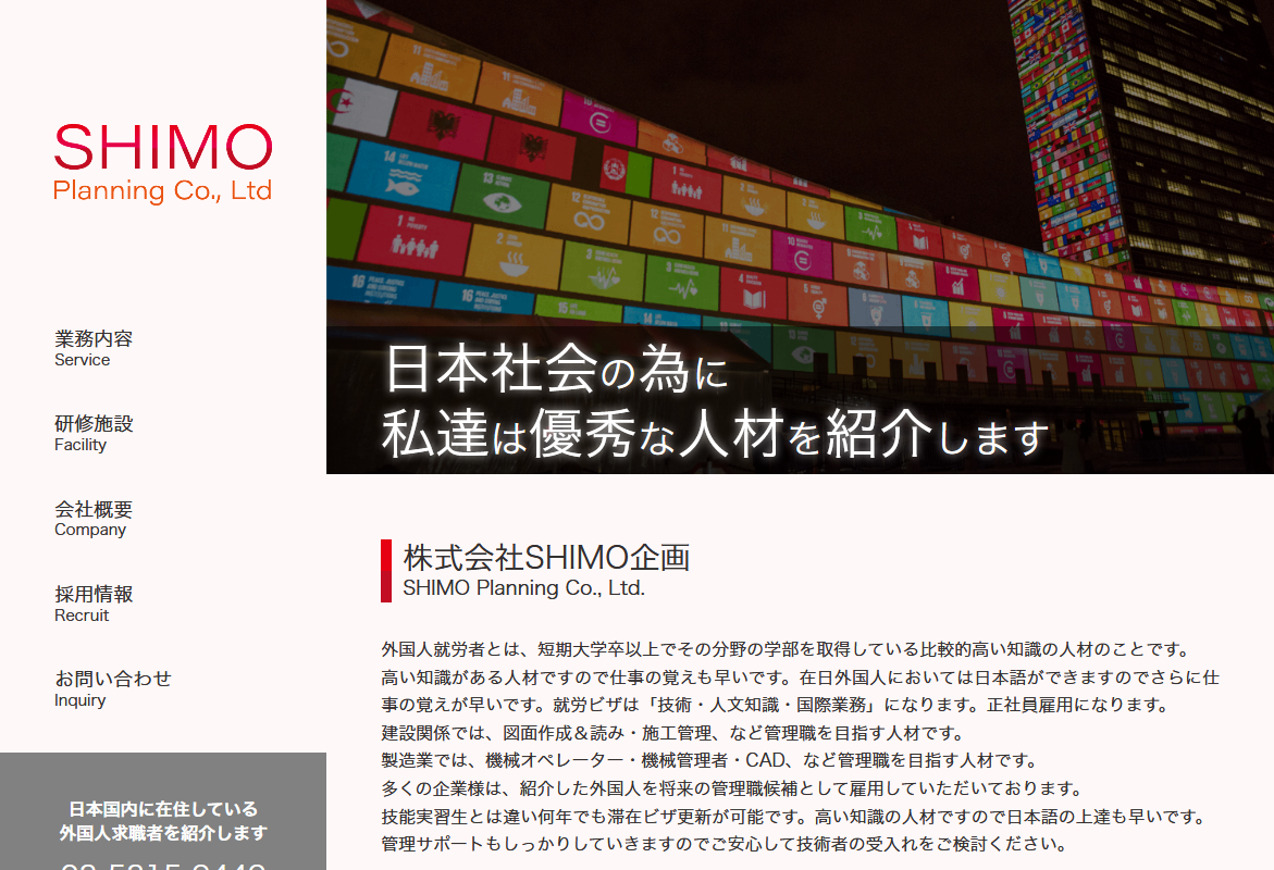 特定技能外国人を受入れ支援・相談できる登録支援機関「株式会社SHIMO企画」のコーポレートサイトを制作致しました。