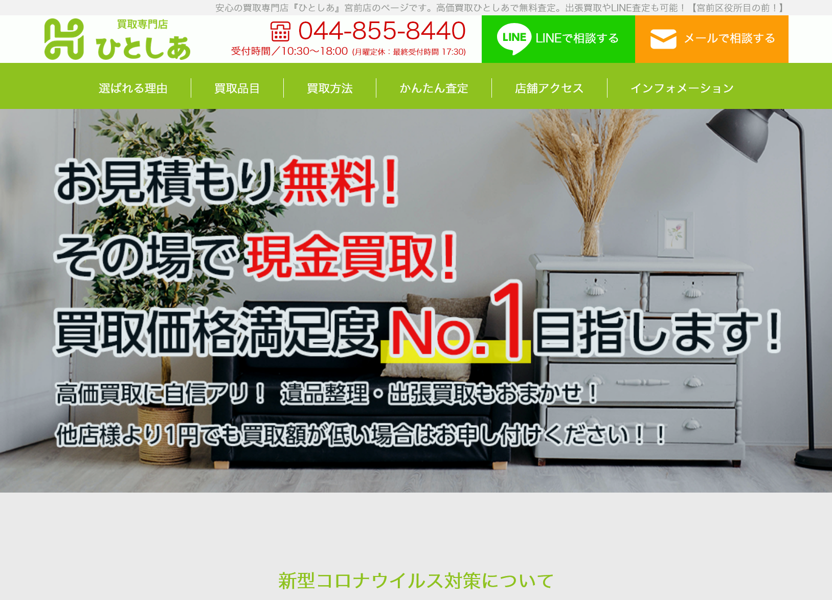 神奈川県にリアル店舗を持つ「買取専門店ひとしあ」のコーポレートサイトリニューアルをご依頼いただきました。