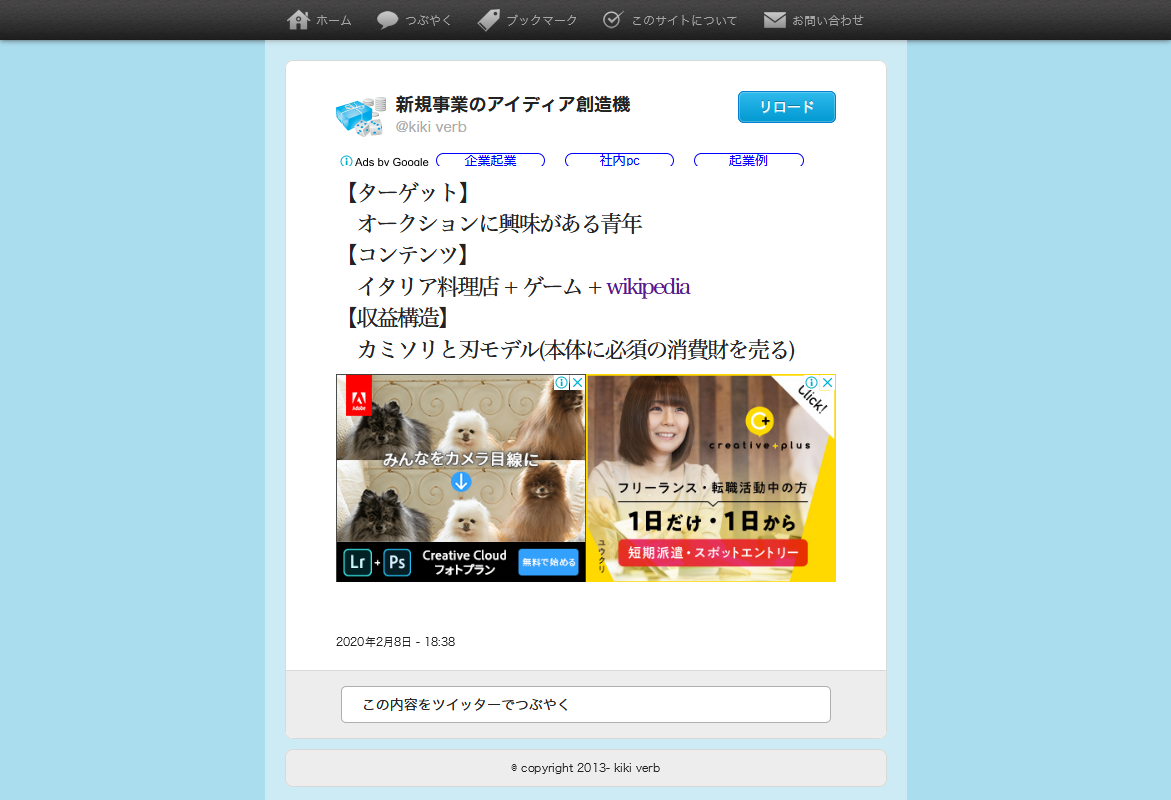 そういったときに脳を刺激するようなサービス、「サービスのアイディアを浮かばせるためのサービス」が欲しいと思い作成致しました。