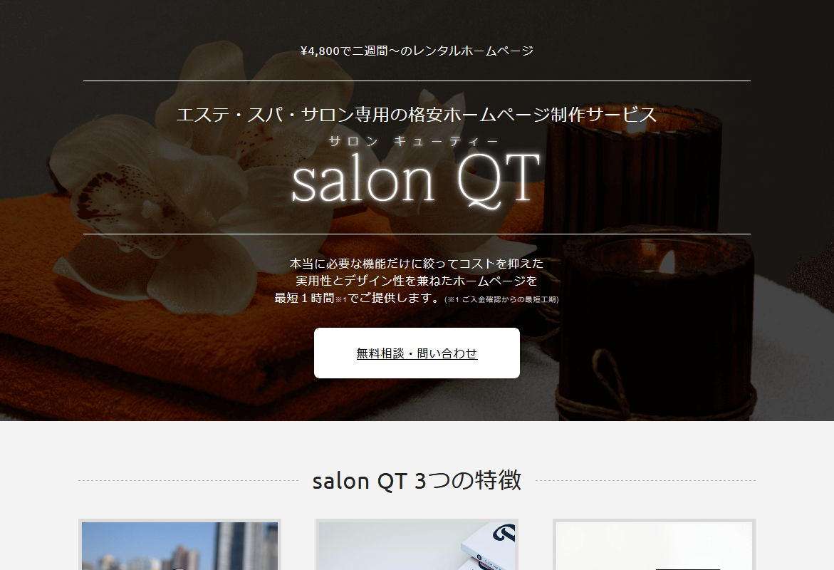 美容業界において新規出店時に金融機関からの融資を受けたい場合、事前にホームページの存在が必要になるが、その段階ではしっかりとしたホームページを用意する余力は無い場合が多いという課題を知り、必要最低限の情報を持ったサイトを超短期間で制作・納品し、不要になったらすぐに公開取り下げが可能な安価サービスを制作致しました。